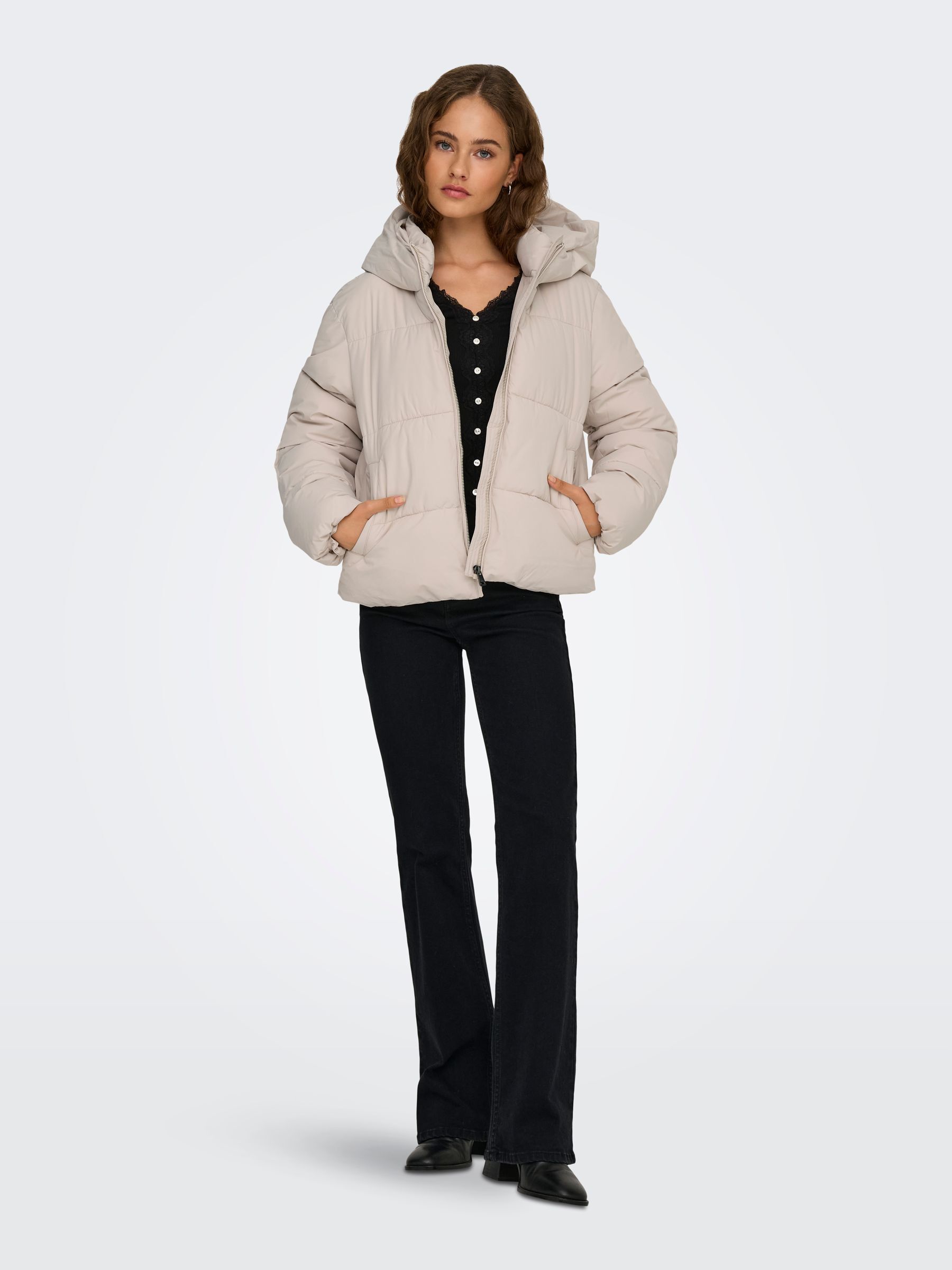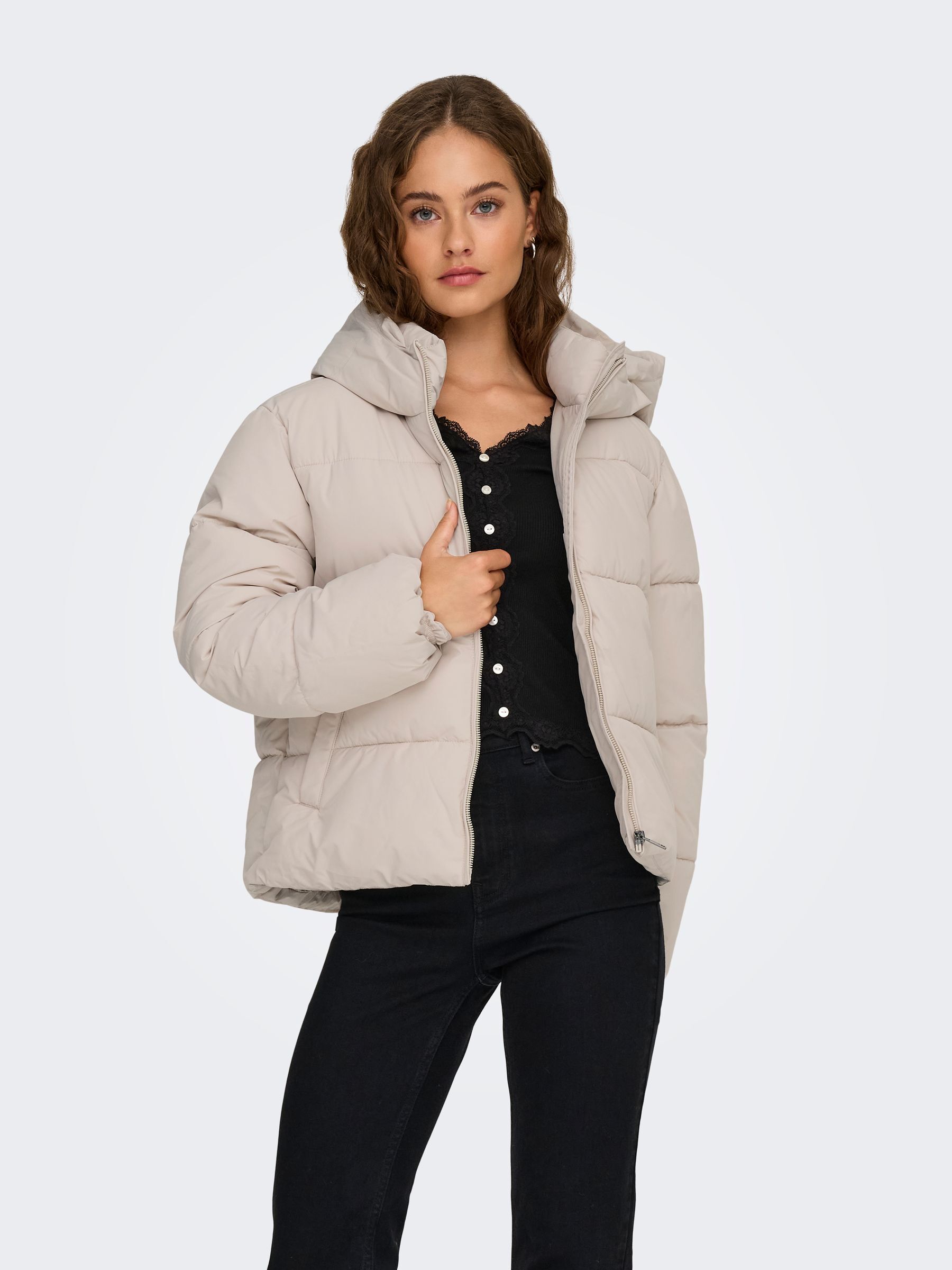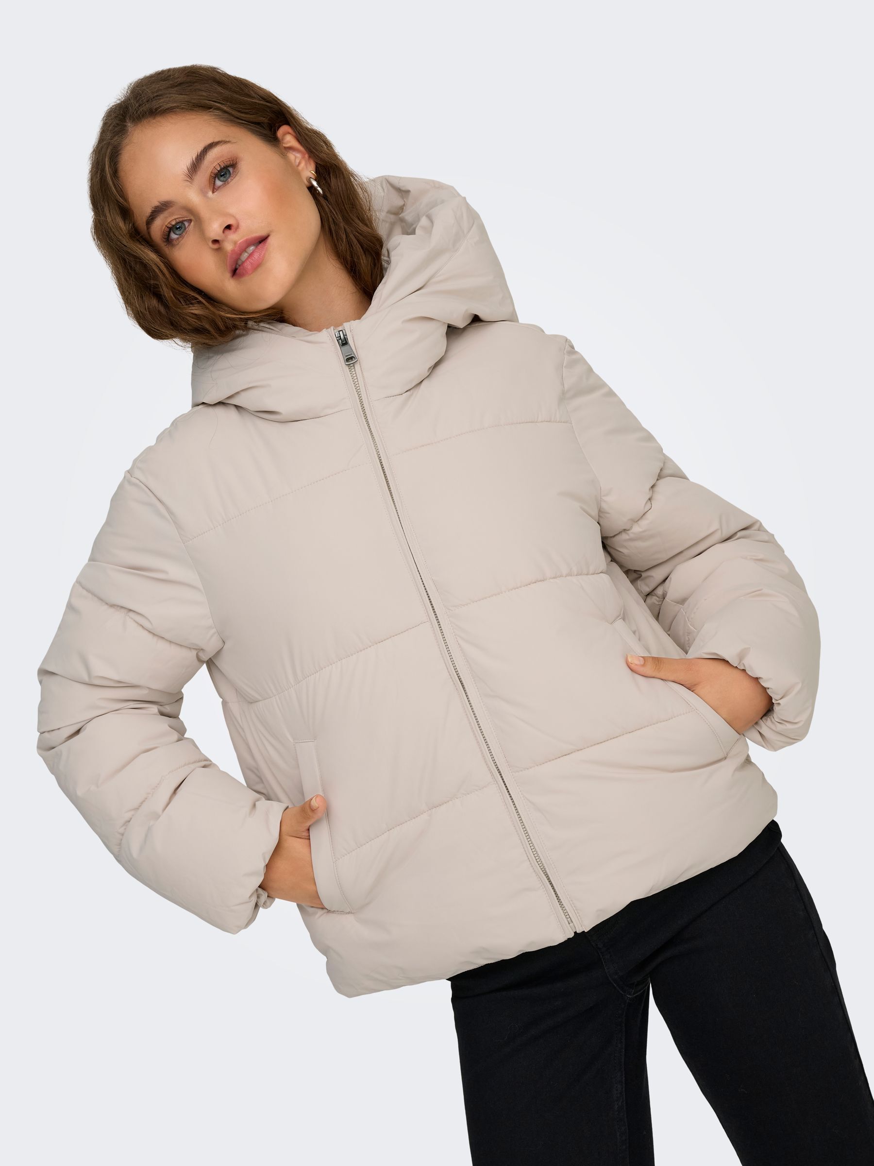• μπεζ puffer jacket