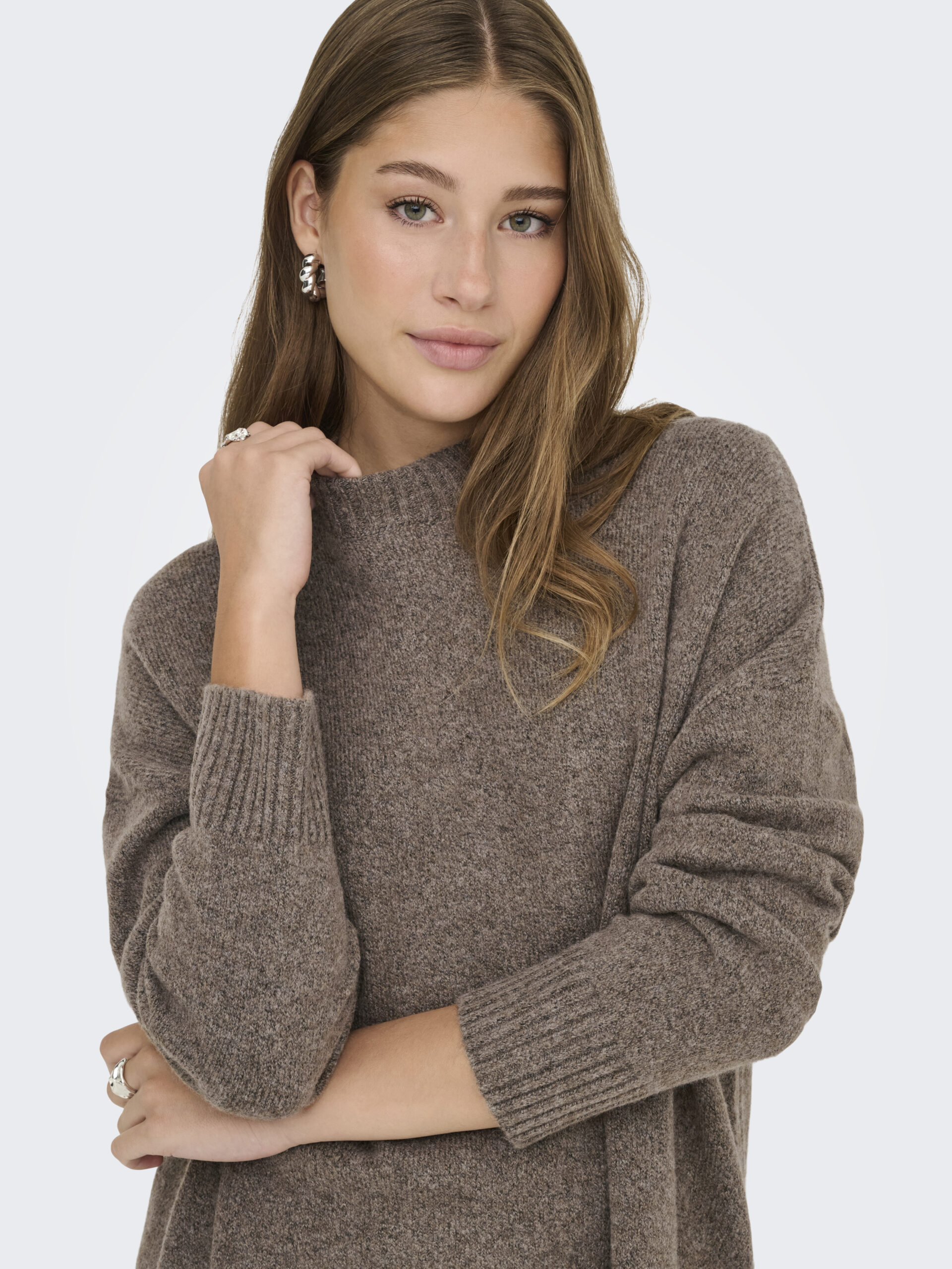 Το Καφέ πουλόβερ από την Only είναι η τέλεια επιλογή για στιλάτες και άνετες εμφανίσεις. Με ψηλό λαιμό, μακριά μανίκια και χαλαρή, oversize εφαρμογή, προσφέρει απόλυτη άνεση και στυλ, από το πρωί έως το βράδυ.